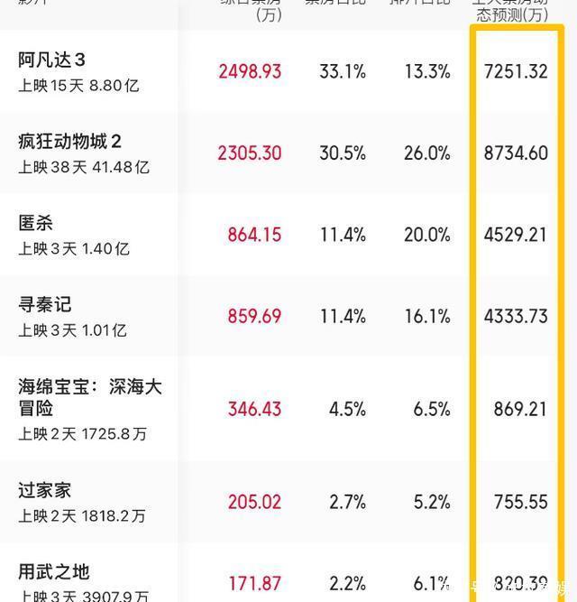 可以说 ,好几部国产大片争霸,最终的赢家却是《疯狂动物城》和《阿凡达3》。 这两部好莱坞电影首日的排片并不是非常占优势,特别是后者,只有8%的排片,但架不住观众们喜欢,昨天两部大片仍旧是前两名,还拿下了1亿左右。 可见,虽然说市场冷,但爆款大片上映之后,哪怕过了一个多月,仍旧挡不住大家的观影热情,保守估计,这两部电影,应该 会持续霸榜到2月份了,因为这一个多月,都找不到有爆相的新片啊。