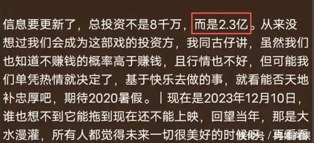 不过,对于6.5亿才能回本的电影来说,还是远远不够的。 其实这个投资放到现在是相当大胆的,毕竟市场较冷,但是放到前几年就很普遍了。 虽然说大家都为了情怀走进电影院,但对于非粉丝来讲,剧情确实不太好,剪辑也很零散。 记得古天乐曾经投资了科幻片《明日战记》,最终一路卖惨,票房也到了6亿以上,但很显然,如今的《寻秦记》没有这么好运了。《寻秦记》票房扑街,古天乐亏到怀疑人生啊,你看了这一部电影吗。